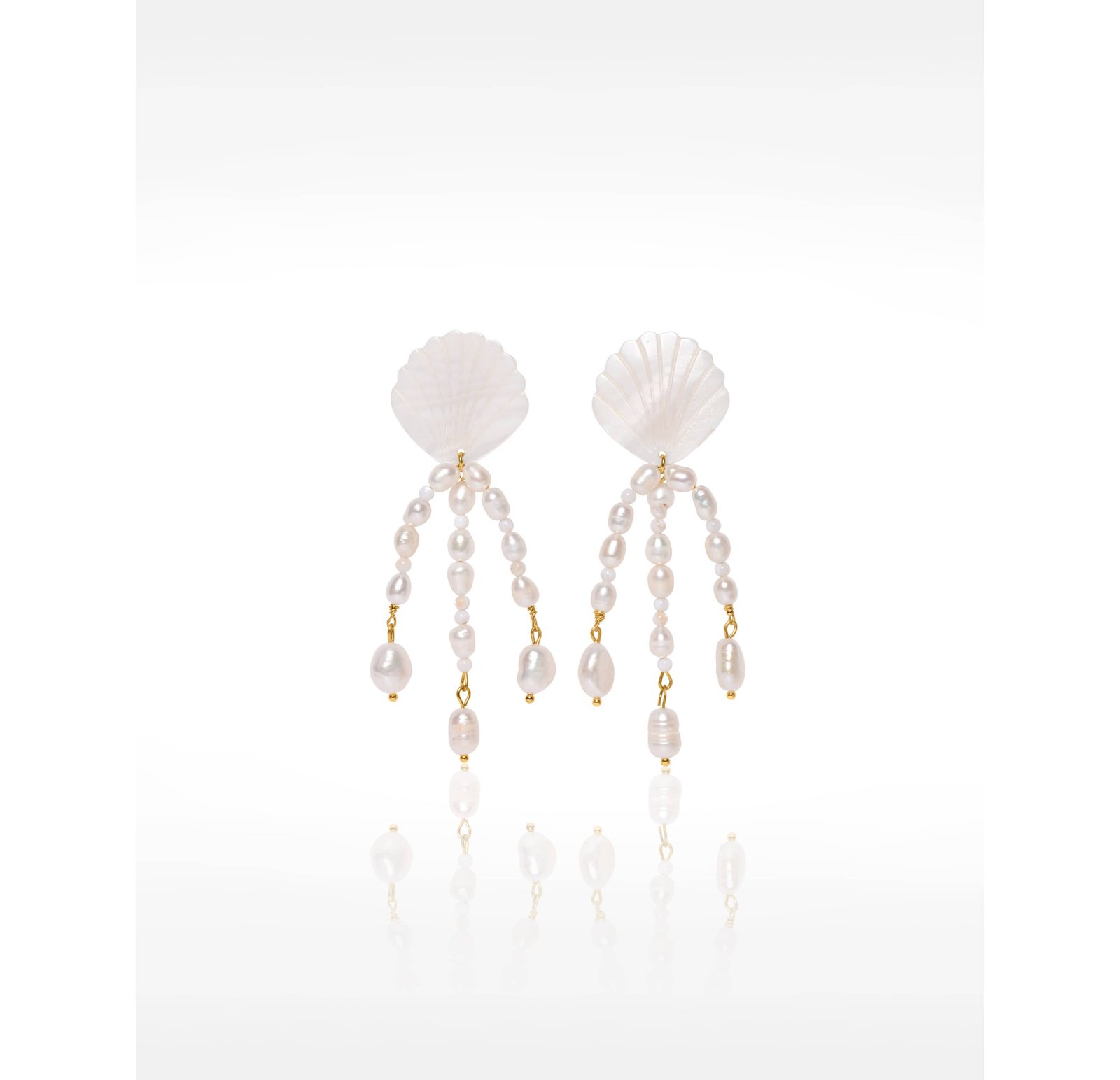 Mother-of-Pearl Shell Drop Earrings with Triple White Pearl Cascade - VENUS