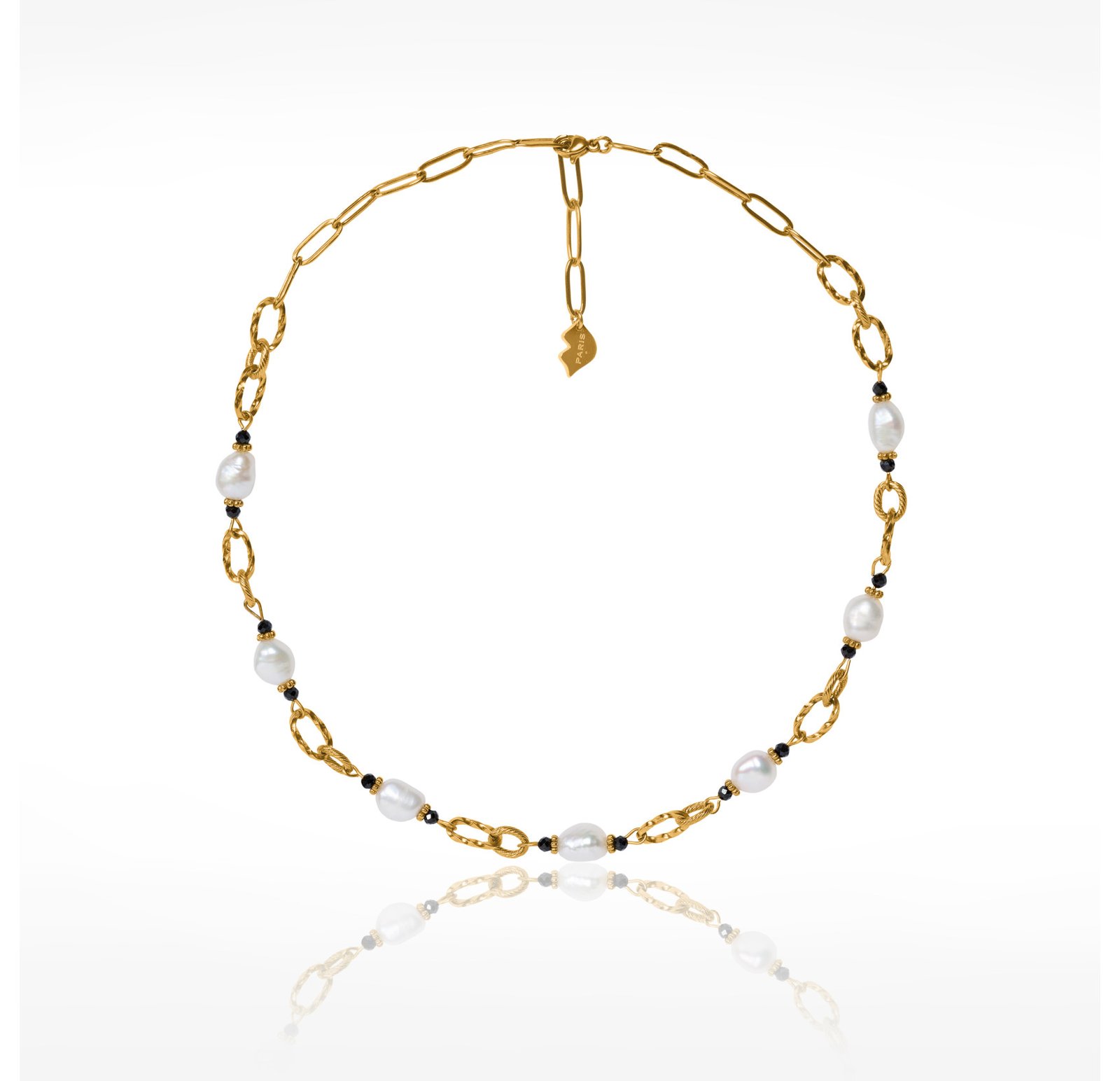 Gilded Stainless Steel Chain Necklace with Baroque Black onyx Pearls - ATHEA
