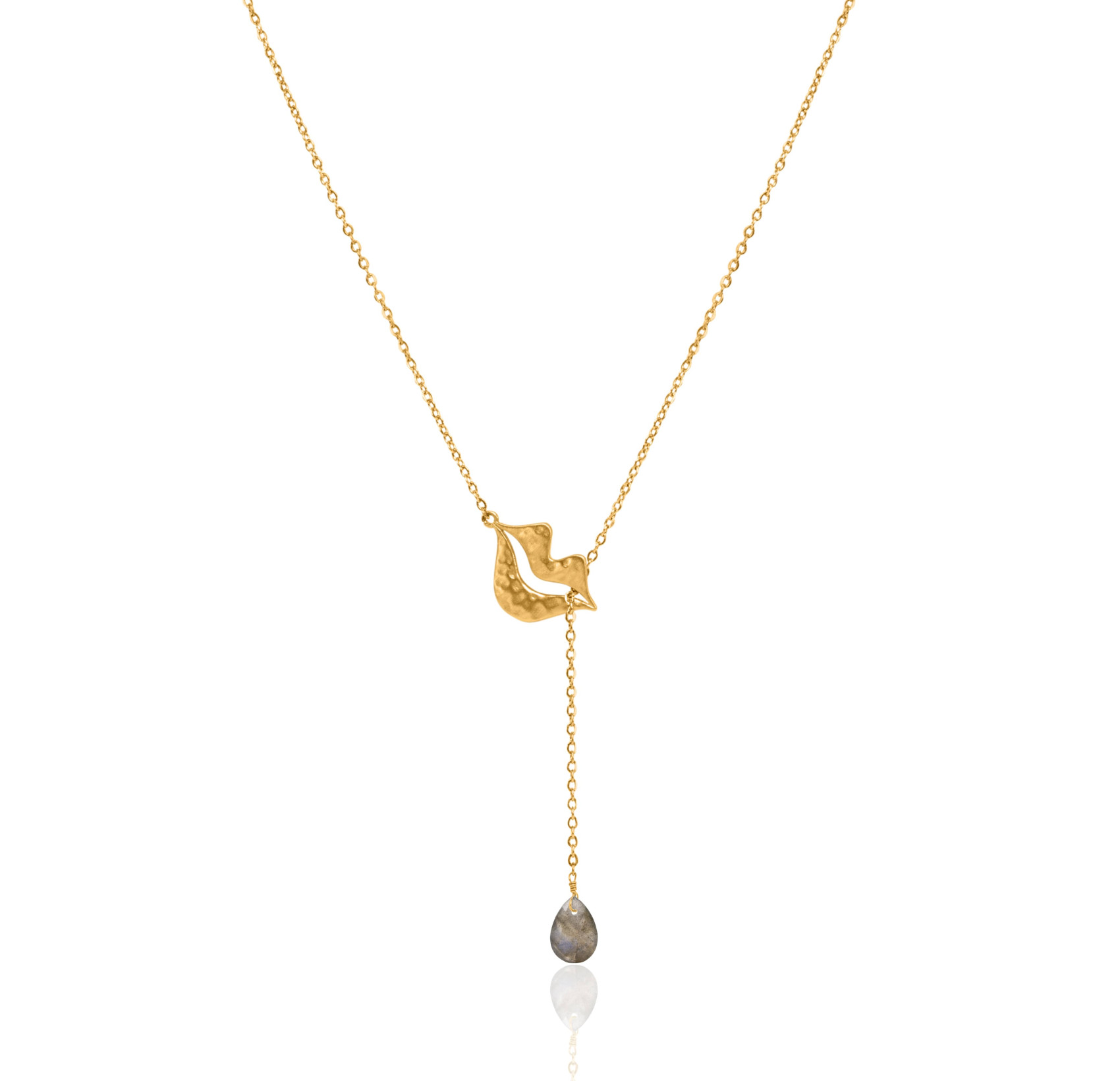 Gold-plated stainless steel tie necklace with Moonstone briolette - HÉRA