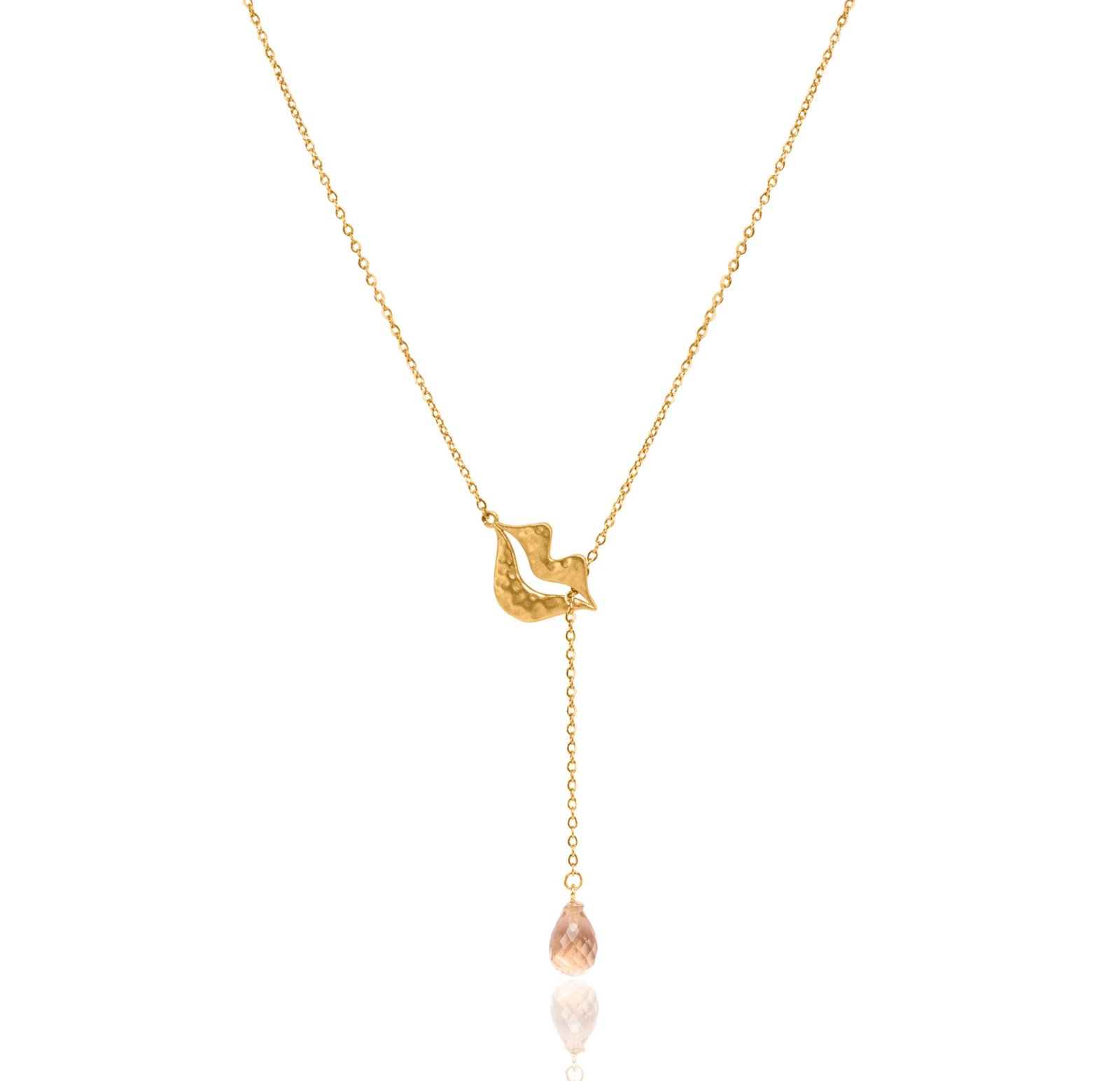 Gold-plated stainless steel tie necklace with peach morganite briolette - HÉRA| Gloria Balensi